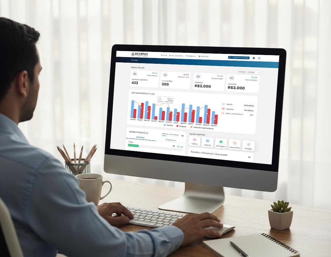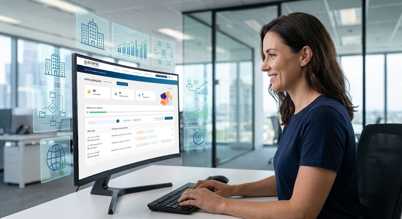 A Octopus combina tecnologia inteligente com interface intuitiva para facilitar a administração condominial.